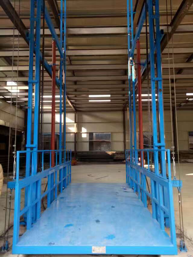 单导轨链条式液压升降平台是一种非剪叉式液压升降机,用于二层以上工业厂房、餐厅、酒楼货物运...